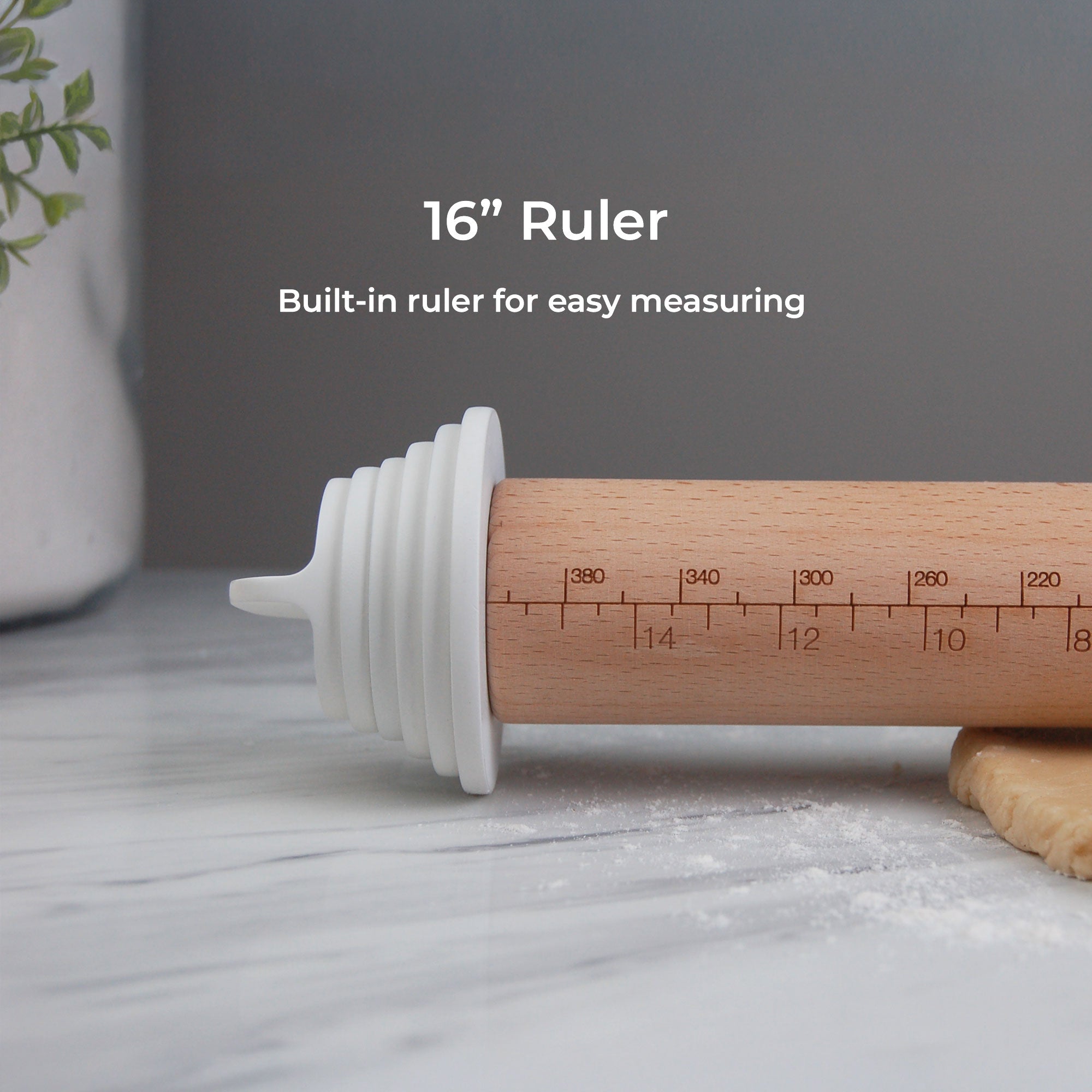 A modern rolling pin that helps roll dough to a perfectly even thickness every time. Each roll brings ease to baking, so you can feel connected to the moment and the people you bake for.